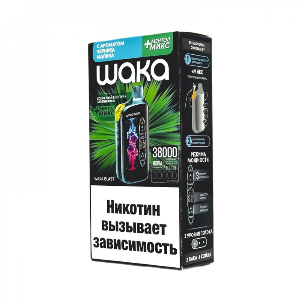 WAKA BLAST 38000 Hard - Черника малина + ментол микс - купить в Ессентуках